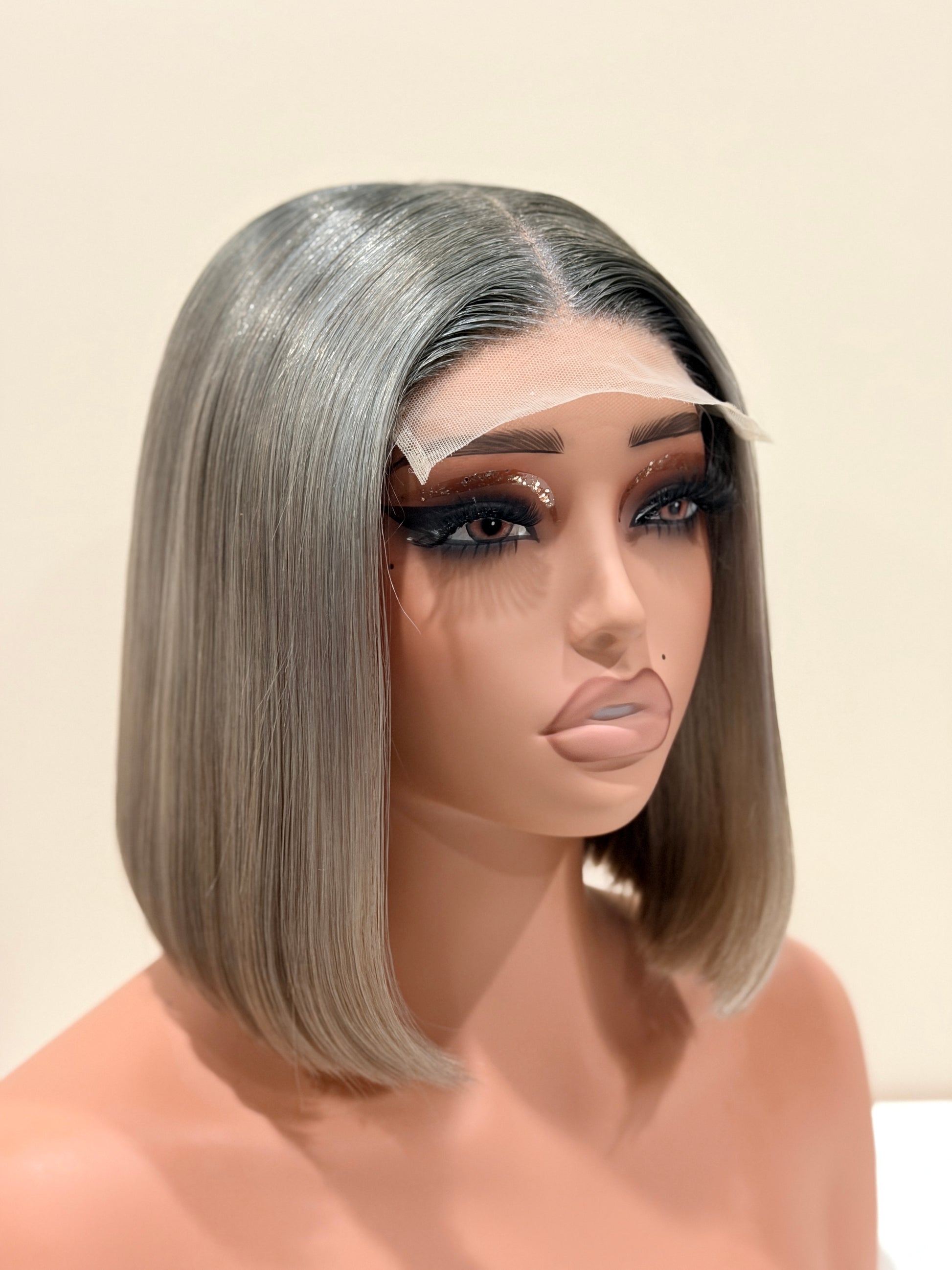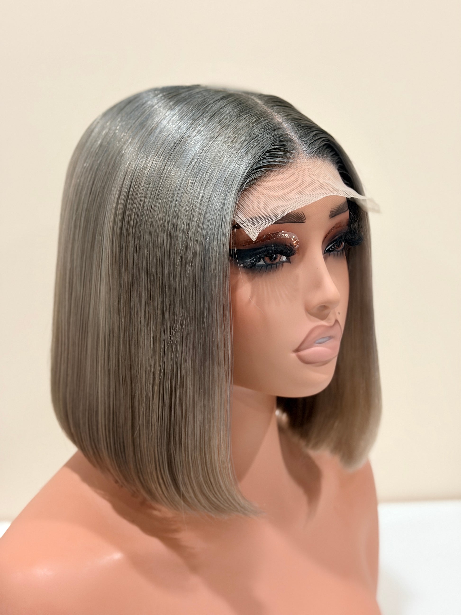 Crafted in a cool-toned platinum shade with softly blended darker roots, Sasha delivers a luminous, high-end finish that is universally flattering across all skin tones — from fair to deep. Her precision blunt cut, bone-straight texture, and tailored length create a clean, sculpted silhouette that elevates any look.